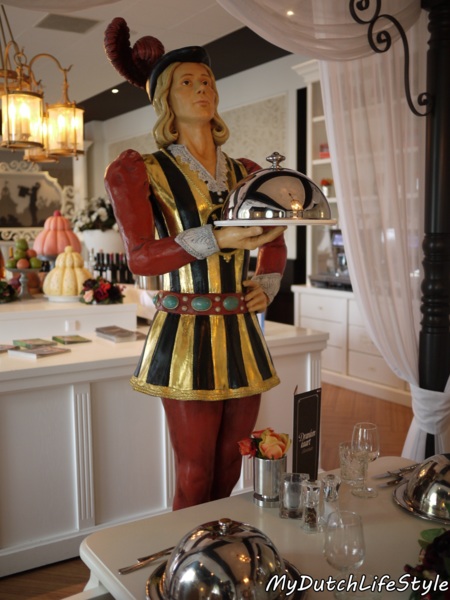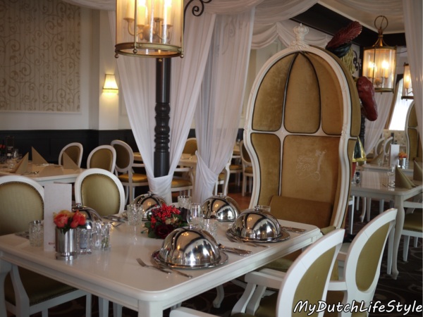 接下來的主題餐廳實在是太夢幻了~馬麻我一眼愛上,趁著人潮尚未蜂擁之際,特地獲准可以讓我拍得過癮,餐廳入口就是一副對稱城堡號角立體圖騰,揭開歡迎序幕,相信,如果熱愛新古典或是美式線條居家氛圍的人來說,只想把內裝陳列所有物件都帶回家慢慢欣賞,實在是夢幻中的絕美餐廳~尤其是餐廳至中VIP布幔包廂,有隨從、有主人椅帶點小華麗、大童趣的餐飲氣氛,誰能輕易拒絕?