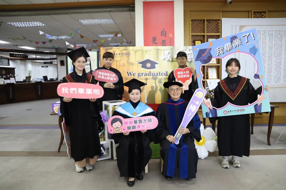 【記者 吳瑞興/嘉義縣 報導】隨著畢業季到來,南華大學圖書館自6月2日開始舉辦「畢業美拍就在圖書館」及「你想成為什麼樣的大人」雙主題活動,為即將邁向新人生階段的畢業生們打造一個融合書香與溫情的拍攝與思考空間,為四年的大學生活留下最美好的回憶。