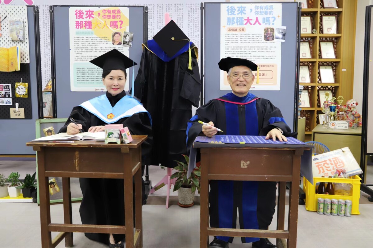 圖:隨著畢業季到來,南華大學圖書館自6月2日開始舉辦「畢業美拍就在圖書館」及「你想成為什麼樣的大人」雙主題活動,為即將邁向新人生階段的畢業生們打造一個融合書香與溫情的拍攝與思考空間,為四年的大學生活留下最美好的回憶。活動期間校長高俊雄和副校長賴淑玲也會到場與畢業同學合影留念。(記者吳瑞興翻攝)