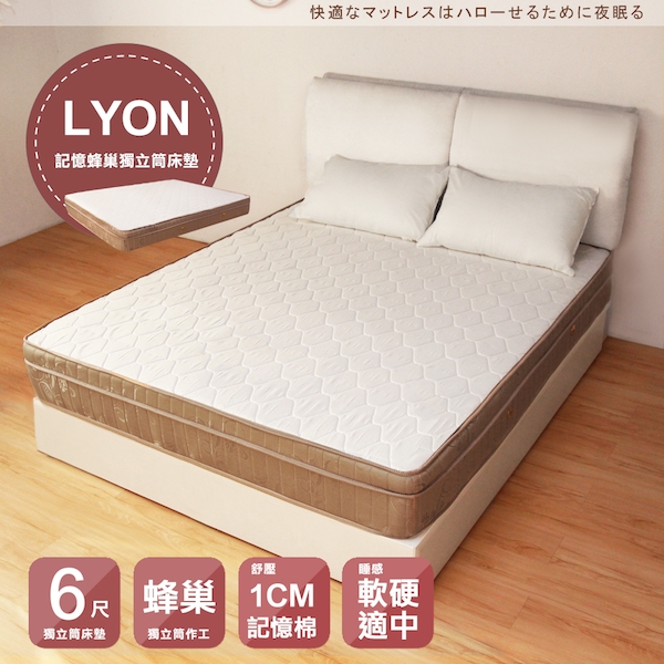 蜂巢式獨立筒是獨立筒的另一種改良型式,材質與作工皆相同,一般的獨立筒採用規律的平行排列,而蜂巢式獨立筒的特色就在於交錯排列的方式,大幅的減少了彈簧間的縫隙,提高了支撐的能力及釋放更多的彈性,減少彈簧間相互牽引,與人體曲線的貼合度就更高了。