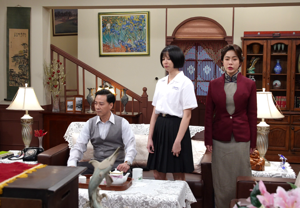 ▲ 尹昭德(左)劇中發怒拍桌罵女兒,氣勢嚇到自己都忘詞了。(圖:台視)