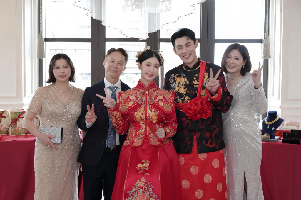 這次的文定儀式由女方主辦,主要邀請了紀曦晨的親友和雙方最親密的家人。雖然規模不大,但整個過程充滿了溫馨與趣味。陳奕特別感謝紀曦晨的父母,他們在籌備過程中給予了極大的支持,從喜餅試吃到宴會細節的安排,甚至在陳奕工作繁忙時代為與主持人開會。紀曦晨也全心投入,從傳統服飾的挑選到宴會背板、進場音樂的選擇,甚至設計了一本用積木組裝的簽到簿,讓每位來賓都能「拼」出自己,成為這段回憶中獨一無二的一部分。