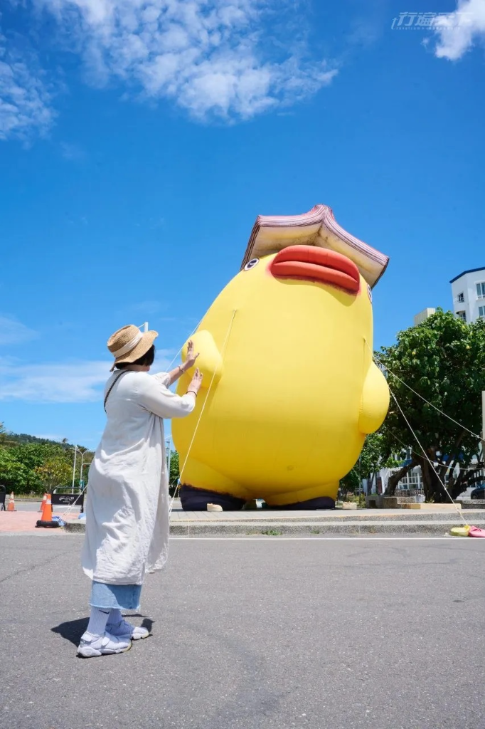 過去曾推出落山風藝術季、大型展覽的看海美術館,近期啟動為期三個月的消防與空調修繕工程,預計休館至夏末。為了彌補遊客無法入館的空窗期,屏東縣政府將展演場域延伸至館外的海口港漁港周邊,設置多件軟性藝術裝置,隨著恆春特有的海風搖曳生姿,讓港灣瞬間化為繽紛的童話樂園。這回屏東縣府集結歷年人氣展品,一口氣重磅回歸,展開名為「怪獸代班計畫」,成功吸引年輕族群朝聖。九座巨型「萌獸」成為拍照熱點,被網友封為歷年最療癒的展覽,包括日本藝術家花房櫻的「擁抱貓咪」、台灣藝術家阿咧的黃色呆萌「書鴨」、以及Alan創作的「風的寓言」與「阿Q」等作品,隨風搖擺的姿態不僅生動,也成為代班期間的最佳主角。