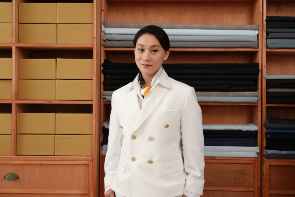 ▲ 何佩芸(左)劇中到尹昭德和黃瑄的西服店訂製西服。(圖:台視)