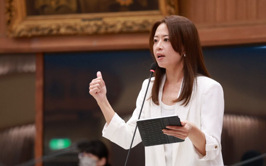 圖/新北市議員江怡臻20日於市政總質詢時,爭取客家福利政策,要求新北市比照其他縣市設立客語認證獎勵金。(新北市議員江怡臻提供)