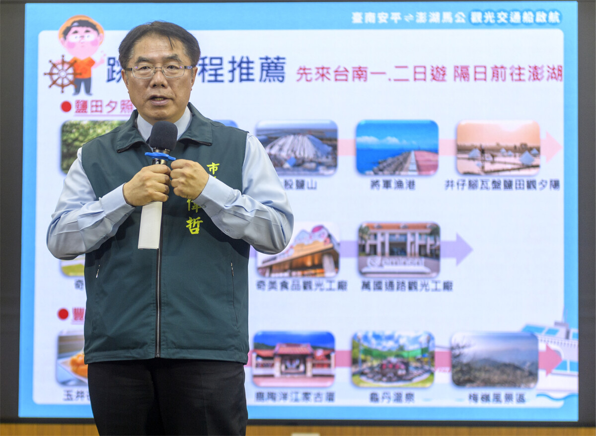 【記者 劉秋菊/台南 報導】暑假熱門旅遊旺季即將開始,為發展跳島旅遊多元遊程及拓展海洋永續觀光,台南市政府將於今(114)年7月8日開展台南安平至澎湖馬公觀光交通船航線,採取每週兩班固定航班,分別於週二與週五各1班往返,由安平港出發直航馬公港,全票原價1500元,試營運特惠價999元,半票600元。今(26)日舉辦活動宣傳記者會,市長黃偉哲表示,台南澎湖跳島遊程不僅可讓台澎兩地旅客往返多一項便利選擇,更可帶動海洋觀光新型態遊程的開發,非常歡迎國內外旅客一起來體驗暢遊。