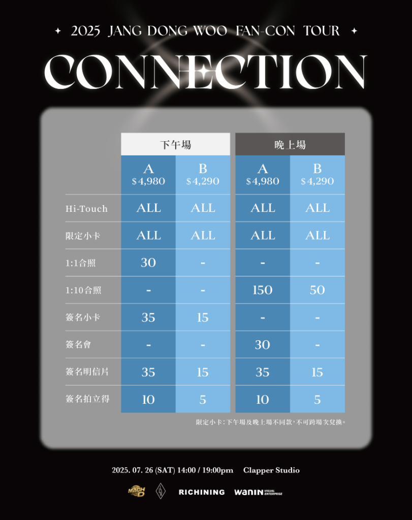 韓國人氣男團INFINITE成員張東雨出道屆滿15周年,終於宣布舉辦個人FAN-CON《CONNECTION》巡迴演出。張東雨表示非常榮幸,興奮預告當天兩場演出將準備不一樣的福利要回饋台灣粉絲,包括全場粉絲都能擊掌、獲得台北場限定小卡,兩場演出則分別有1對1簽名會、1對1合照、團體合照、簽名小卡、簽名明信片、簽名拍立得的抽獎機會,多種福利充分展現他被稱為天使的溫柔個性。