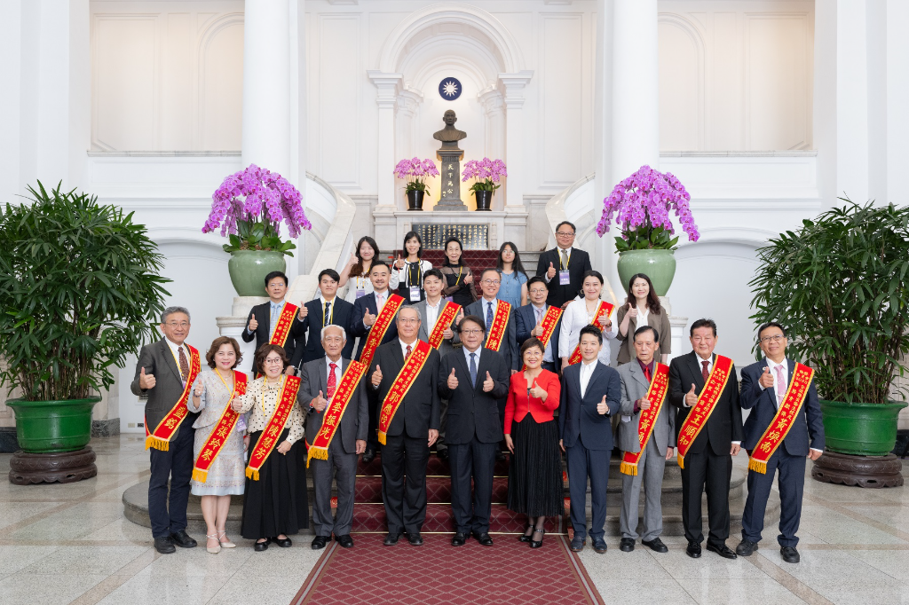 ▊圖說:感謝總統府秘書長潘孟安(前排中),及副秘書長何志偉(前排右四),代表賴總統接見僑務委員長徐佳青(前排右五)及2025年全球傑出僑生校友得主。