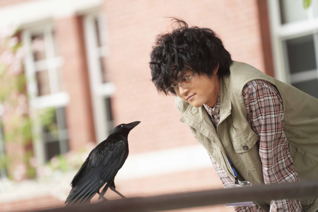 ▲ 鈴鹿央士在片中還有一項神秘超能力,身為動物研究學者的他,居然可以和路邊的烏鴉「談話」。(圖:天馬行空)