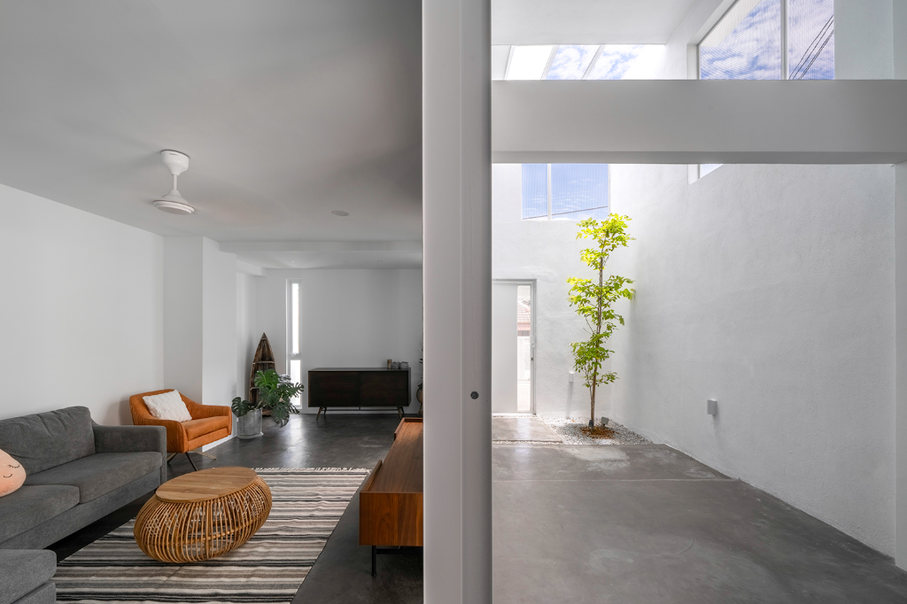 面對預算緊繃與物資短缺的雙重壓力,設計團隊選擇了一條非傳統的道路:「拒絕奢華,回歸空間本質」,將焦點集中於回應屋主最基本的日常需求,而非想要的需求,於是極簡主義便成為了貫穿整體設計過程的座右銘,設計師將原本的房屋結構剝離到只剩下骨架,並僅留下樓梯與屋頂,然後重新賦予它與過往相比顯得截然不同的嶄新生命。