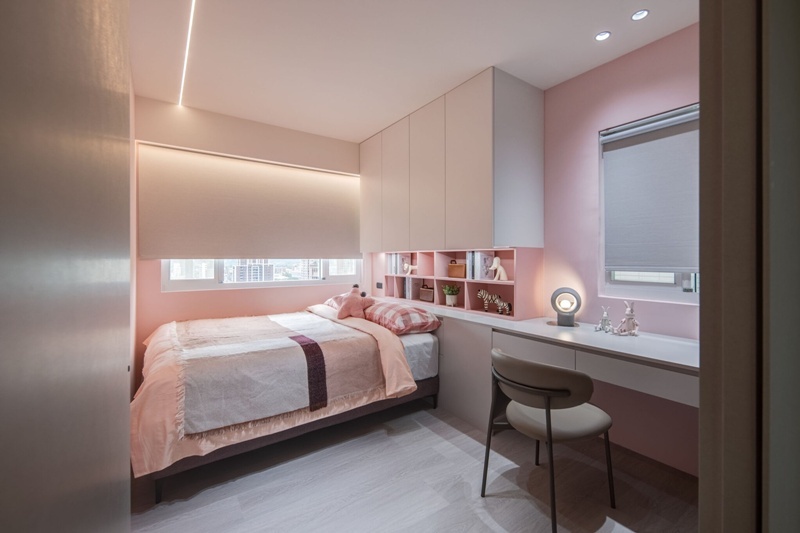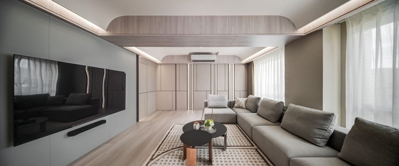 - 柔弧天花:天花設計融入圓弧收邊,搭配柔光燈源,減輕視覺壓迫。