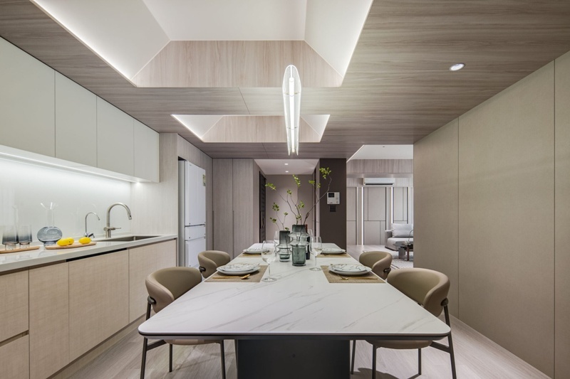 - 桌景共融:岩板桌面鋪陳,營造簡約溫潤的餐敘氛圍。