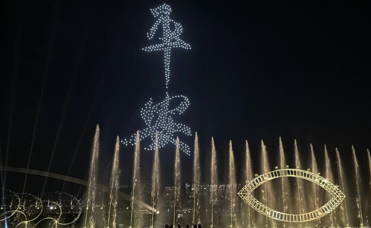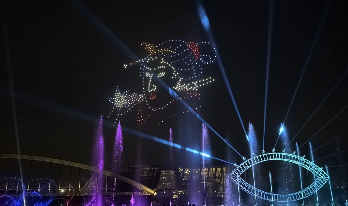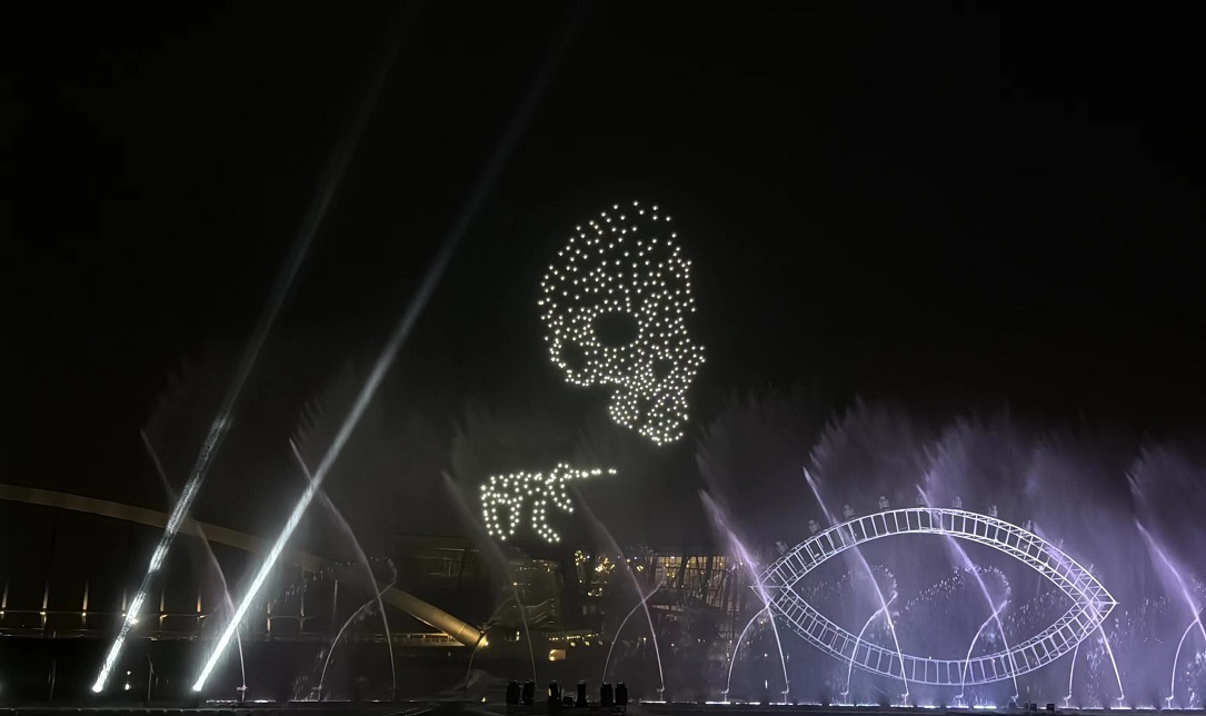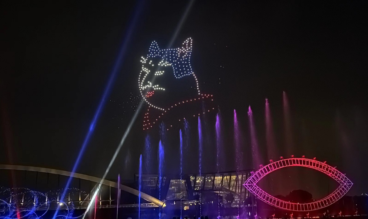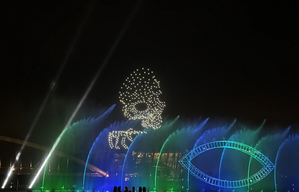 【記者 吳瑞興/嘉義縣 報導】暑假來臨,備受各界期待的故宮南院夏日親子藝術月,無人機和水舞燈光秀及户外劇場演出將接連登場,三日晚上無人機預演浮世繪圖案及葛飾北齋大浪沖上夜空場景,現場觀眾驚呼連連場面相當震撼。故宮南院表示,7月5日晚上無人機展演及水舞燈光秀將正式登場,10月11日晚上則是展演甲子萬年及院慶主題,另外每年夏天高朋滿座的大型戶外兒童劇場,今年將於7月12日晚間推出劇碼《青鬼與赤鬼》,歡迎各縣市民眾前往觀賞。