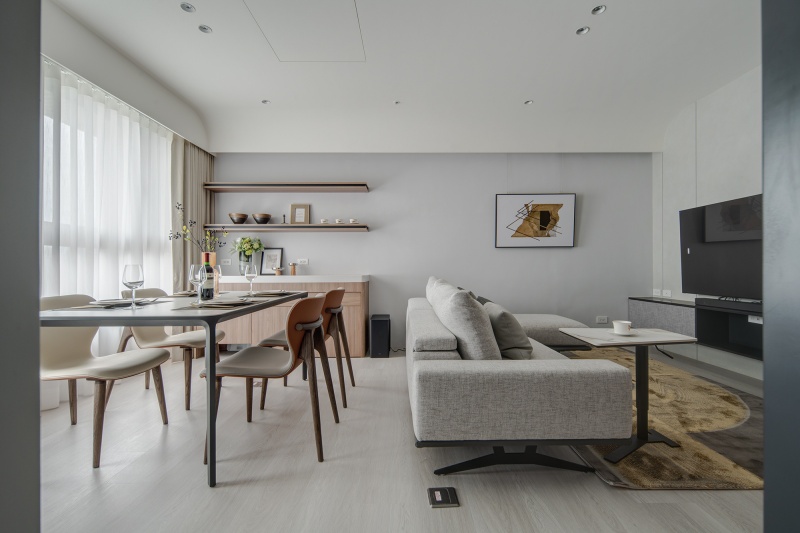 - 木質基調:全室鋪設淺色木地板,延伸至立面與櫃體,展現自然溫潤的居家質調。