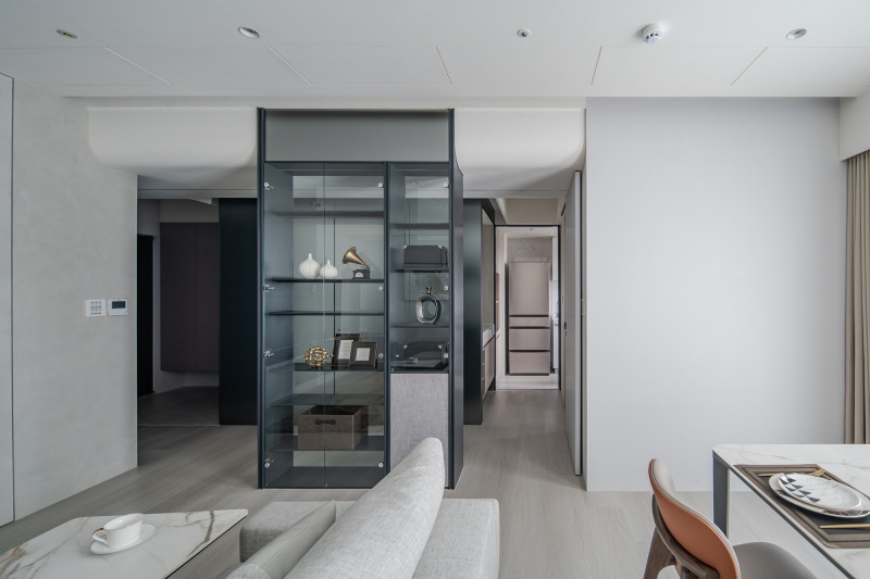 - 介質轉化:通透展示櫃作為分區媒介,兼具展示與收納功能,維持獨立性且保有穿透感。