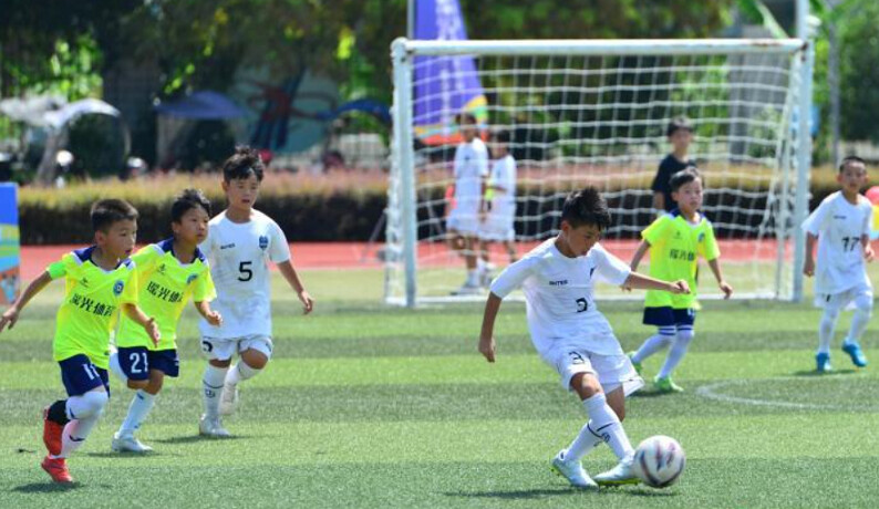 ▲來自臺灣的桃園獵鷹足球協會代表隊(白)與福州瑤光體育代表隊展開角逐。