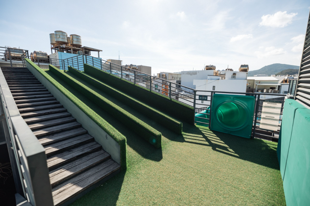 入住耳東華苑的下午四點起,迎賓時光正式拉開序幕。豐富的點心、飲料與經典紅白酒品嚐體驗,讓旅人瞬間進入渡假模式。孩子們則能在頂樓盡情享用無限量霜淇淋,挑戰日光滑草坡,或在眺山望海的戲水池中嬉戲放電。頂樓的遊憩區不僅有充氣泳具與發光燈牆,還能遠眺大尖山美景,讓大人小孩都能找到屬於自己的快樂角落。