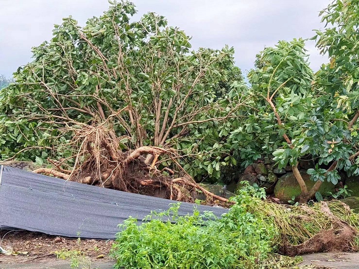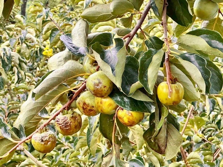冰雹加上颱風後連日大雨,番路鄉許多果園宛如戰場。一顆顆未成熟的柿子與酪梨、荔枝、龍眼橫陳地面,枝椏斷裂、泥濘不堪,原本結實累累的樹上,如今僅剩零星果實,且多數因風吹碰撞已嚴重瘀傷、裂果,幾無商品價值。「光是有機肥就花了四十萬,一夕之間全泡湯。」種植柿子近四十年的許姓農友紅著眼眶說。他表示,今年本是產量最好的年份,不料一場風災讓所有希望歸零。