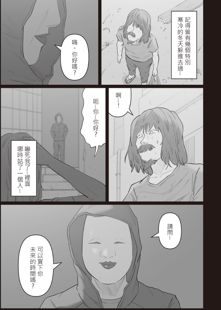「請問,可以買下你的時間嗎?」一名戴著白色面具、身穿帽T外套的神秘人向流浪漢如此說道。一只黑盒子便出現在他的面前。只要放進珍視的事物,作為交換,流浪漢就可以得到他所要的東西。但是盒子的異象,反而讓他重複生活在同一天。