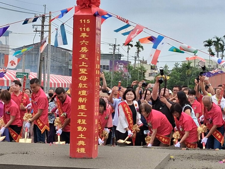 【記者 劉春生/雲林 報導】國家級重要民俗「雲林六房媽過爐」,115-116年輪值股為五間厝股,(7/20)舉辦紅壇新建工程動土典禮,由爐主顏徐素芬、雲林縣長張麗善、立法委員張嘉郡、丁學忠、文化部文化資產局長陳濟民,縣府文化觀光處長陳璧君、民政處長蕭德恕、保存者中華民國六房媽會理事長徐萬成、斗南鎮長沈暉勛、斗六市長林聖爵、虎尾鎮長林嘉弘、大埤鄉長林森寶、土庫鎮長陳特凱、議員蔡東富、簡慈坊、顏忠義、王秋足、張庭綺等多位貴賓及地方代表遵循古禮焚香化疏後一同親持金鏟動土,祈求紅壇興建工程能平安順利。
