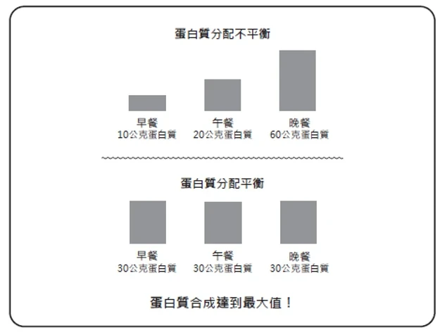 不過好消息是,只要了解如何運用飲食來治療,自己所做的決定可以帶來改變,於生理上與心理上皆為自己打造理想的生活。雖然有些人認為最重要的是每天攝取的蛋白質總量,但研究文獻則指出,建立與維持肌肉的最好方法是在一天中適當分配蛋白質攝取。在臨床實踐中,我發現每天適當分配蛋白質,也可以建立長期遵循的習慣。
