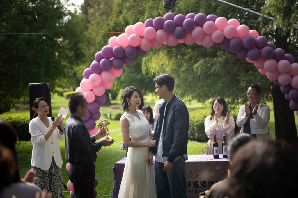 ▲ 冠中(劉書宏飾演)幻想跟世美(丁寧飾演)一同領獎。(圖:華視、公視台語台)