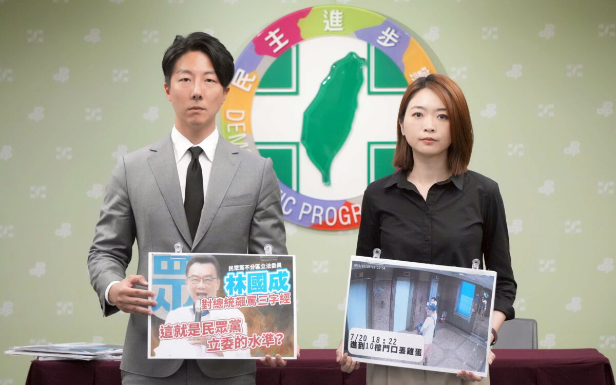 圖/民進黨今日由發言人吳崢、韓瑩召開「民眾黨就這水準?嚴厲譴責髒話暴力惡行!」記者會,痛批林國成脫序言行公然侮辱國家元首。(民進黨提供)