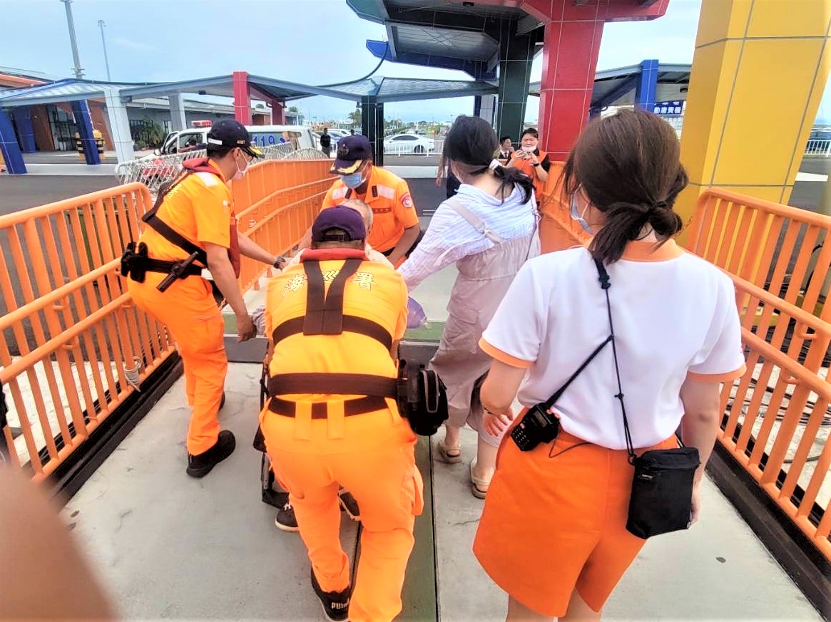 〔News586/記者侯姵伃嘉義縣報導〕海巡署中部分署第四岸巡隊於7/21日下午接獲通報指稱,一艘由澎湖返抵布袋的客輪「雲豹輪」上,有旅客突感身體不適,疑似患有心臟疾病,已陷入昏迷,急需醫療協助;布袋商港安檢所立即派員協處,並通報消防單位協助,成功完成旅客後送任務,展現海巡及消防單位積極為民服務的精神。