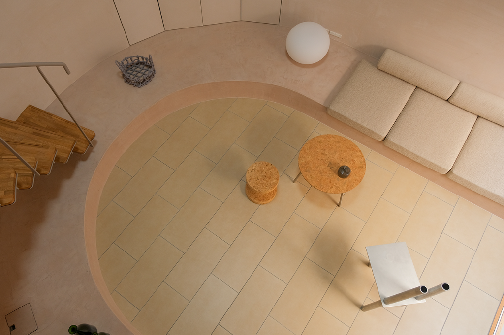 而為了創造舒適的居住環境,房屋配備了專業的地暖系統,尤其是在冬季,可以有效地加熱整個建築。牆壁與天花板均使用具有除濕功能的特殊漆料,強化了建築本身控制濕度的效果。通風系統則採用全熱交換器,具有92%的溫度交換效率,在通風的同時保持室內溫度和濕度的穩定,從而減少空調負擔。