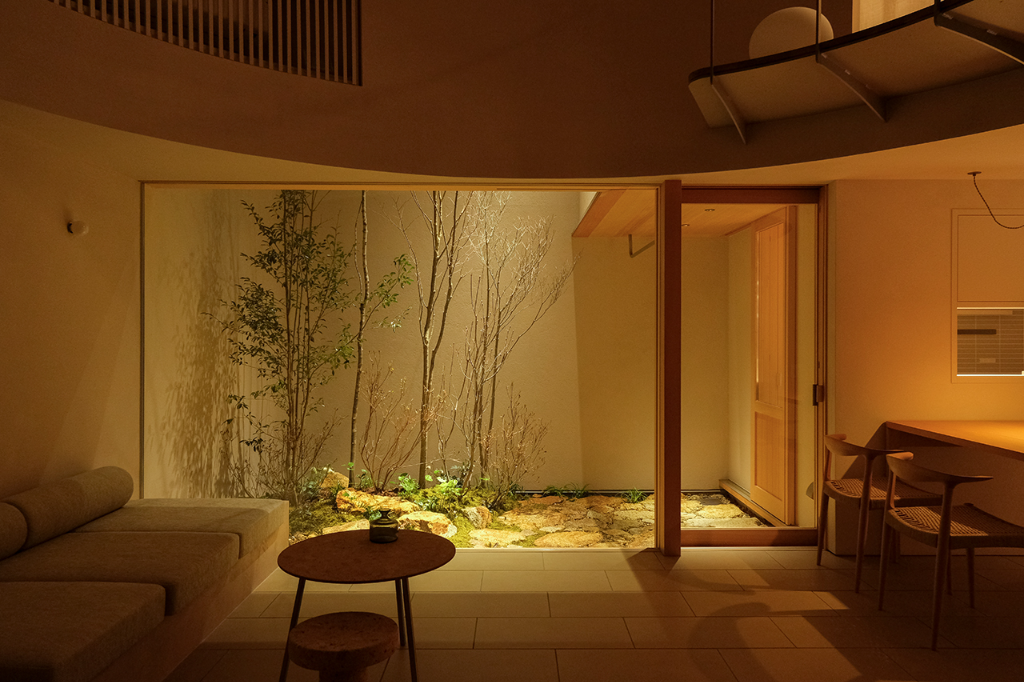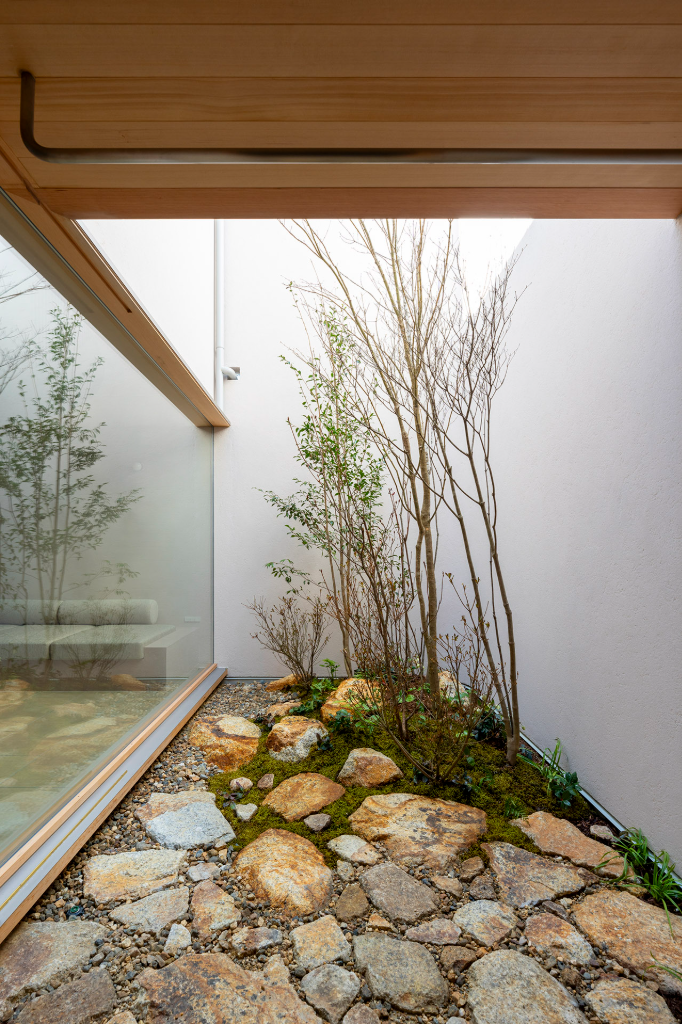 至於庭院是這間住宅的重要元素之一,設計師規劃了多層次的植被景觀,從苔蘚和蕨類等低矮植物,到景觀石和樹木,創造出一個緊湊又深邃的景觀。這種設計使人們可以在日常生活中親近植物,仔細感受天氣與季節的變化。