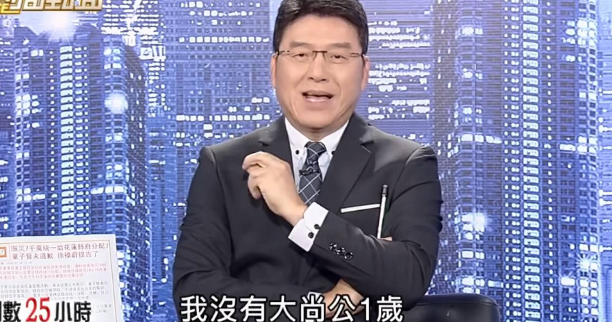 大罷免投票今(26)日舉行,律師謝震武24日主持政論節目時,突然在節目尾聲澄清一件事,表示網友說他大資深媒體人尚毅夫1歲,但其實他跟尚毅夫是同年出生,「我沒有大尚公1歲,我們同年OK」,讓現場來賓瞬間笑翻。