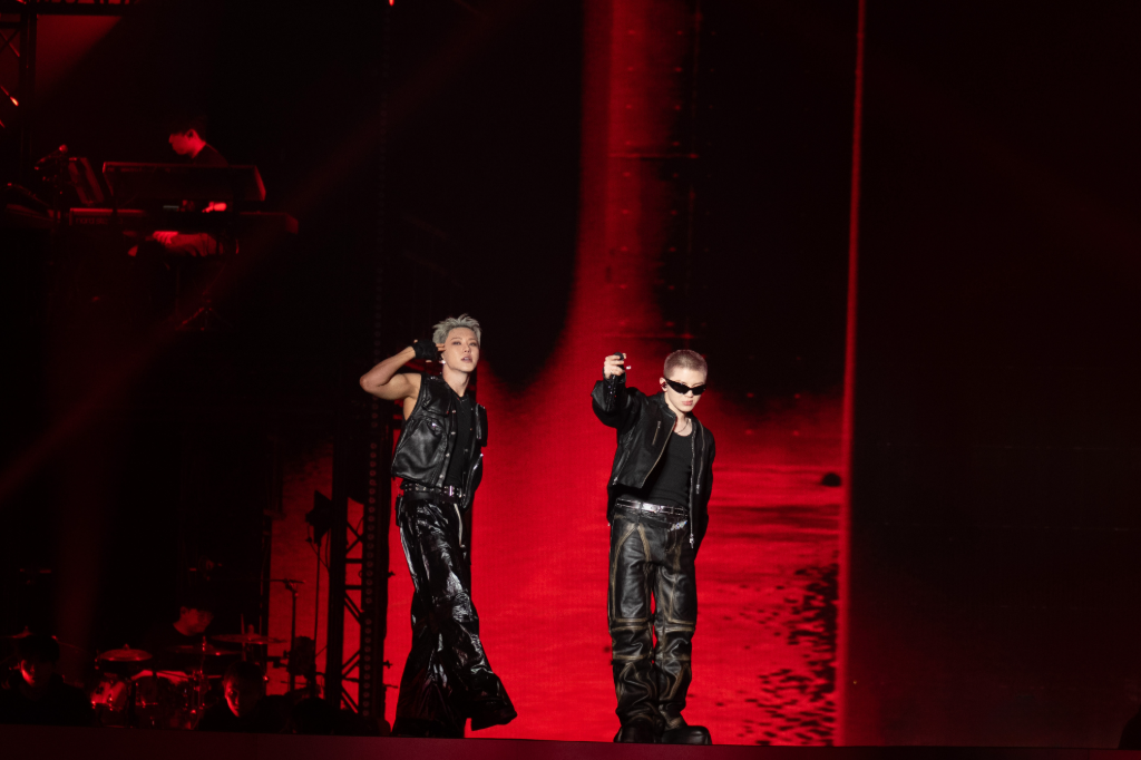 這場演唱會是“HxW”首次FAN CONCERT的海外首站,繼7月11日在首爾開跑,終於將火熱現場移師台北,開場便以全黑俐落帥氣勁裝登場,演唱《BRING IT》、《96ers》瞬間炸裂舞台,展現了雙人默契與強大舞台魅力。