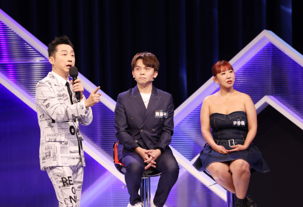 ▲ 哈林庾澄慶(左)主持公視《哈!真相大白了》,與藝人黃豪平對話一來一往,笑料百出,右為新聞人李香儀。(圖:公視)