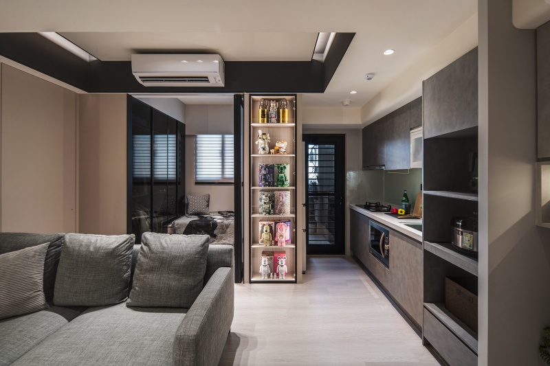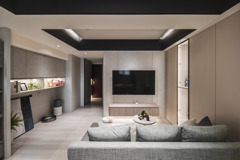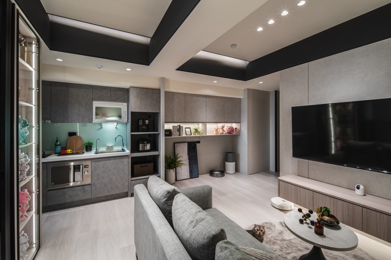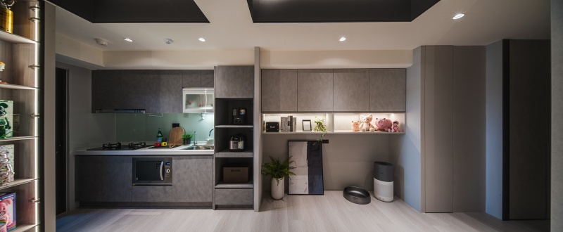 - 坪效升級:客餐廳以中性色為主軸,搭配簡約照明設計,放大小坪數視覺。