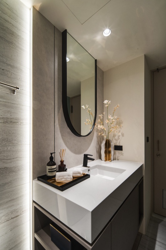 - 暖韻眠室:主臥選用柔色配搭淺木飾面,佐以溫潤質地,形塑愜意休區。