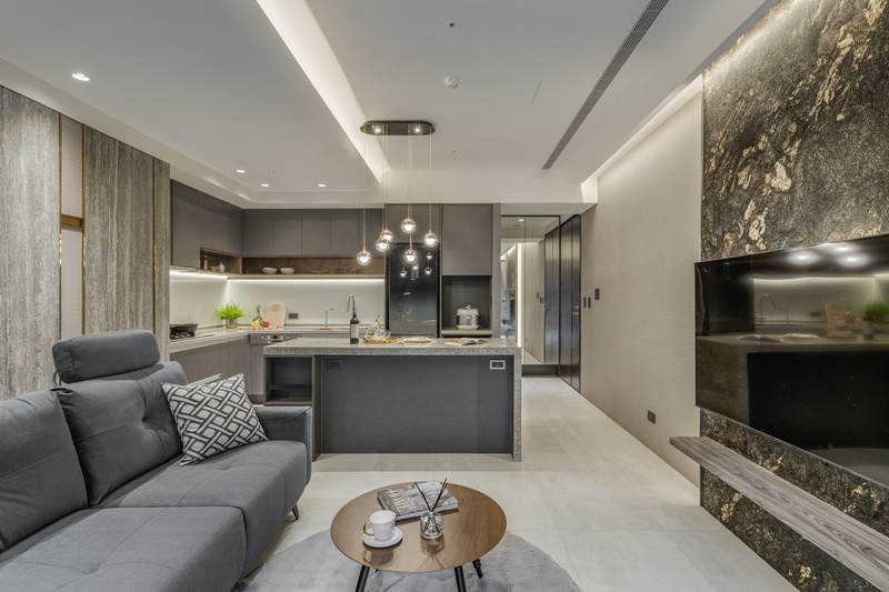 - 特色塗層:局部牆面採藝術塗料處理,柔化邊界並增添光影變化。