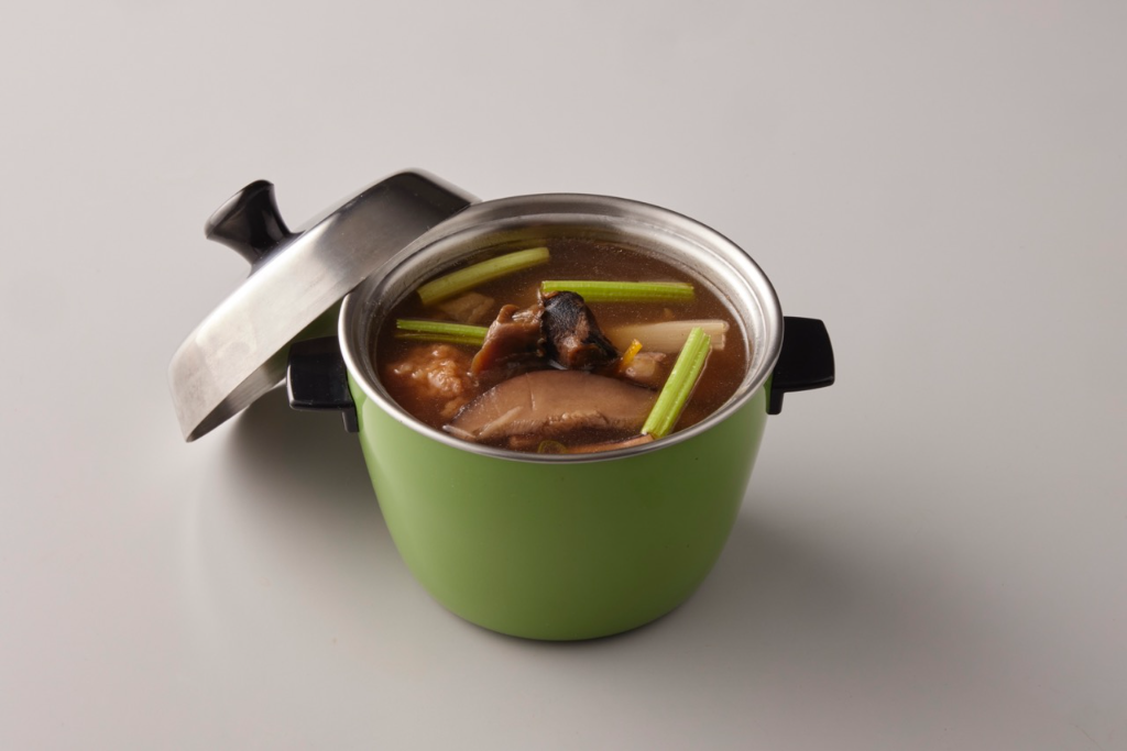 阿Ben白吉勝在《角頭》系列跟隨東門幫喜爺的Ben,現場試吃台味道地、別具特色的角頭菜尾湯「魷魚螺肉蒜」,喝完作勢鎮定,打趣笑說:「這湯啊讓你一喝就靜下來。魷魚、螺肉、蒜苗…這些料,都是以前酒家老饕才會點的。喝進去,不只是味道重,是有那種老江湖的味——湯裡有故事,講的是一種做人要圓、做事要穩的道理。」搭配的酒款也很台,有台式LV之稱的茄芷袋作為裝飾,將各大角頭最有人情味的菜市場作為靈感,展現角頭最有人情味的一面。