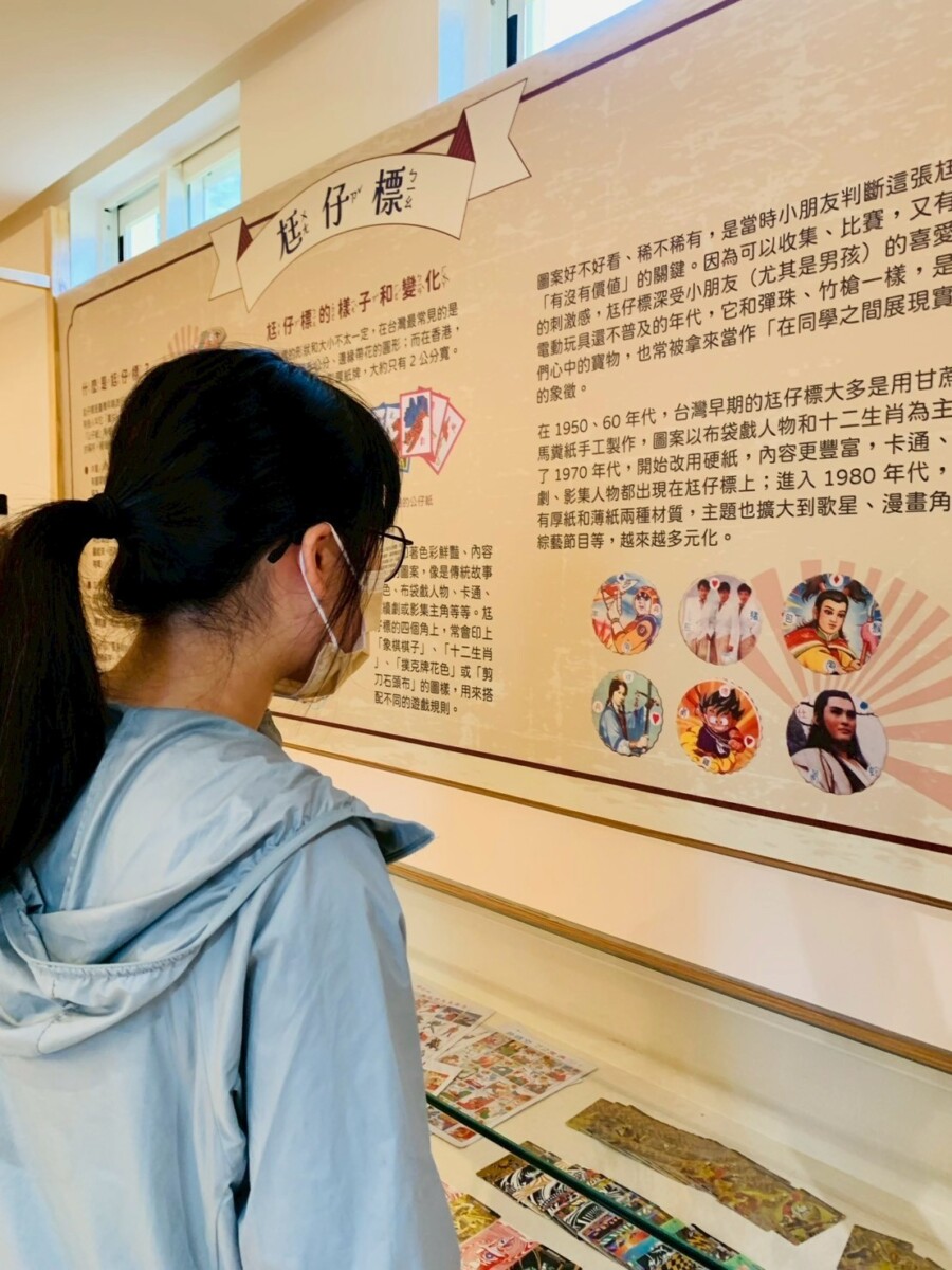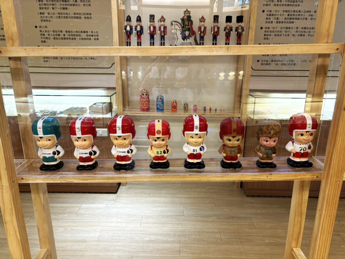 展覽匯聚了近百件珍貴的懷舊玩具,生動呈現50年代至今的台灣童玩演變。其中具代表性的展品包括:曾是50年代孩童最珍貴寶物的玻璃彈珠,象徵著純真與自由的童年風景;以及當年文化潮流縮影的尪仔標(又稱尪仔仙),透過「擊牌」、「掀牌」等玩法,建立起孩童間的友誼。這些玩具不僅是遊戲工具,更是承載著台灣社會變遷與家庭互動演進的珍貴載體。
