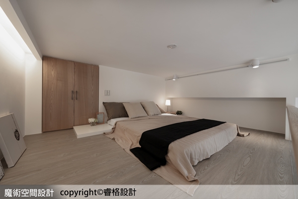 11. 【圖說】夾層臥室區延續自然木質色打造舒眠氛圍,並利用衛浴上方天花板的空間收納,作為臥室的衣櫥。