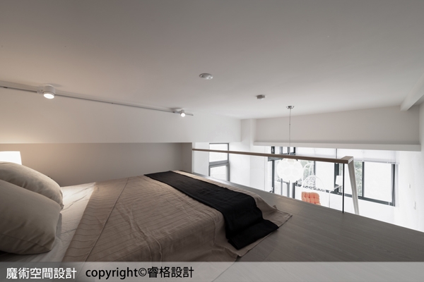12. 【圖說】夾層臥室區除自然引光外,側邊大樑下規劃間接照明,輔以角度可靈活調整的軌道燈,讓所有視角均能充分受光。