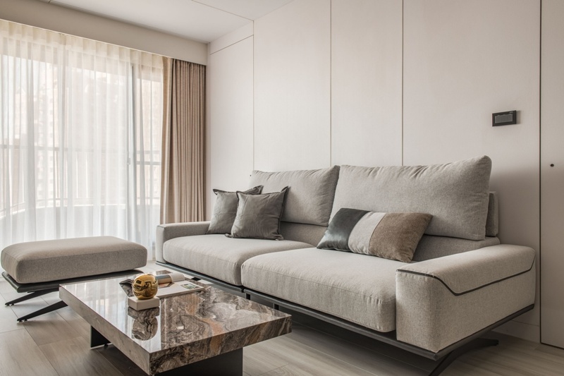 • 皮革鋪敘:家具包覆墨灰與米色皮革,形塑靜謐的居家氣息。