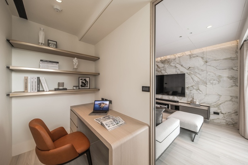 • 耐用鋪陳:地坪選用超耐磨木地板,結合石材與木質,兼顧美感與機能。