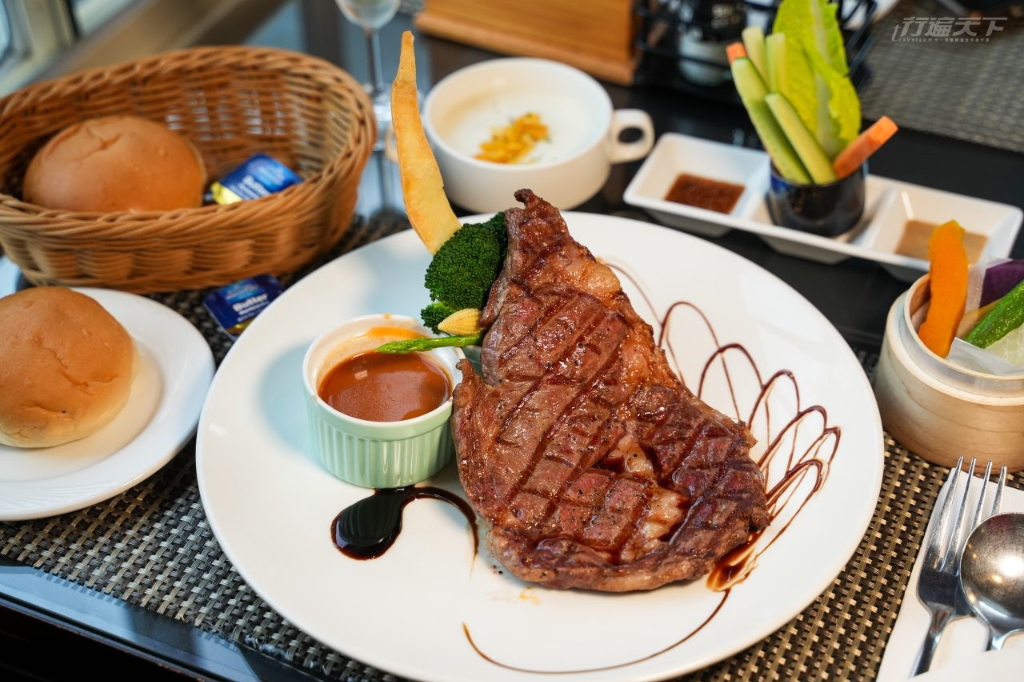 台灣的高海拔農場也能享用牛排、戰斧豬!雲霧西餐廳晚餐基本主菜包含脆皮德國豬腳、法式羊排等排餐可選,還能加價預約精選美國沙朗、戰斧豬排、鱘龍魚菲力等主廚私房菜。
