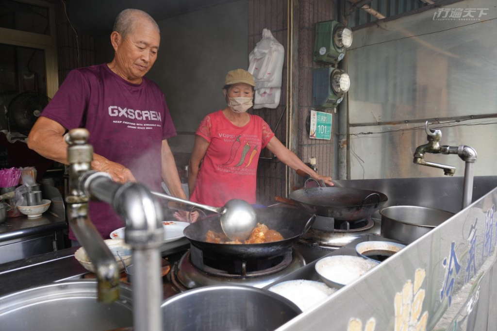 不過短短20年間,隨著南科廠商進駐,善化與周邊鄉鎮平地高樓林立,連鎖商家紛紛展店,早已不復小時候記憶中的樣貌。工作後,若有機會一早來到善化,我總習慣把車停遠些,步行到「慶安宮」廟口,以碗粿與味增湯解決早餐。若是午後,離廟不遠的老店「北門城小吃部」則成了我的首選。每次點菜時,檯前冷藏櫃裡那處理得乾淨清爽的豬腳圈,總吸引著我的目光。「北門城」的豬腳雖名為紅燒,實際上是加入大量番茄醬拌炒,風味近似糖醋,又帶有醬油調出的紅褐色,獨樹一格。醬汁的酸甜去除了肥膩感,與傳統醬油紅滷做法截然不同,十分開胃。這裡的粿條可炒可煮,Q軟滑順,搭配酸甜豬腳,是善化不能錯過的在地好味道。