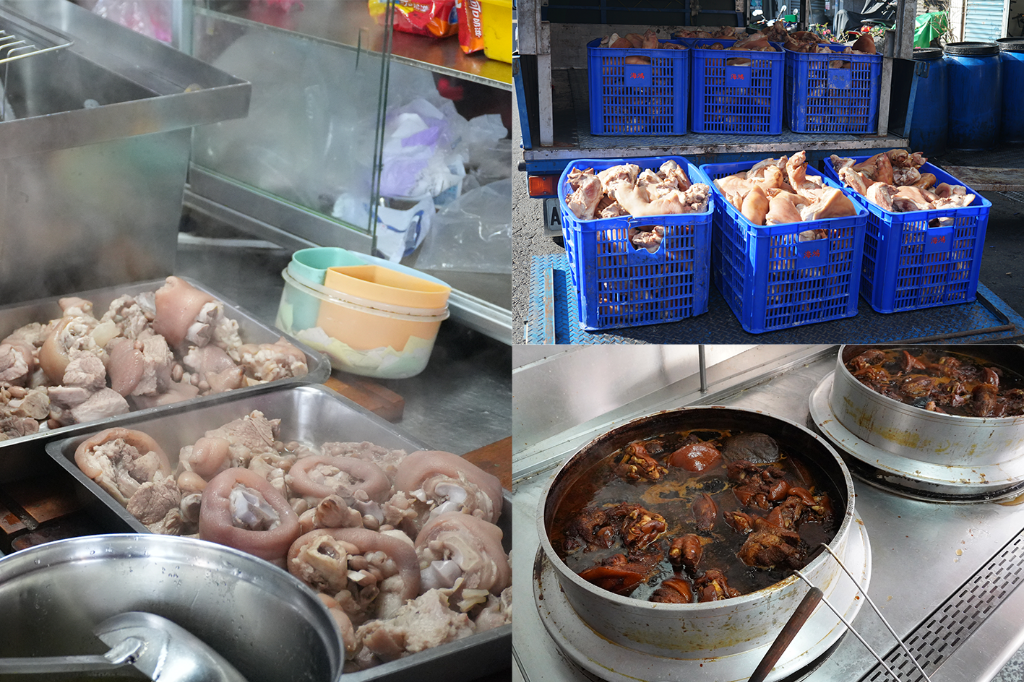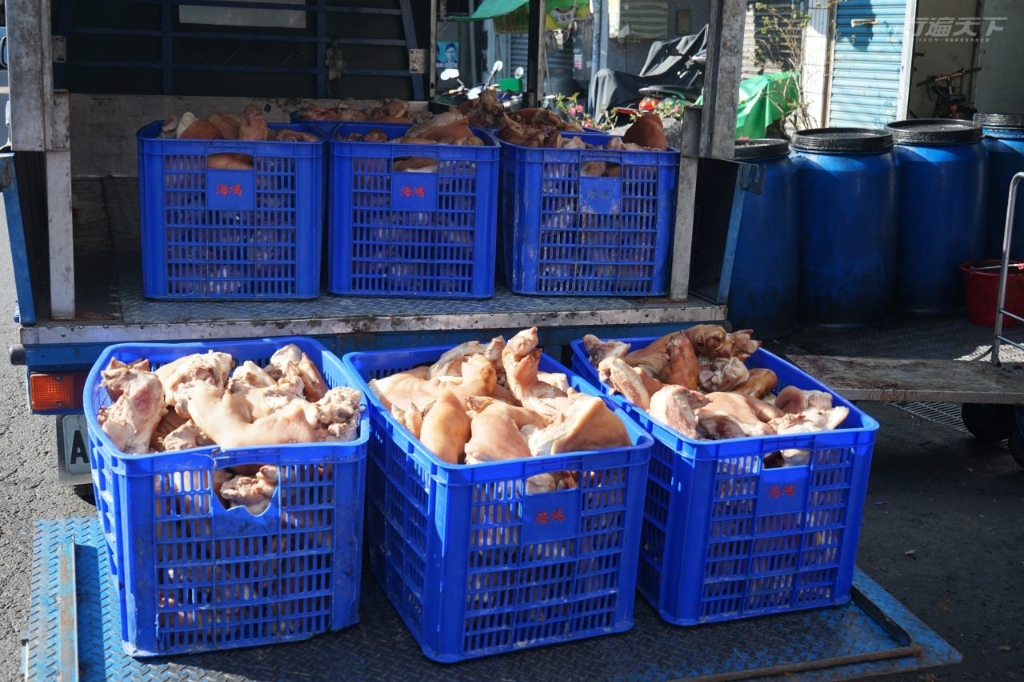 ▲ 萬巒豬腳街每日生意鼎沸,一整籃的豬前腿不斷送往廚房準備下鍋滷煮。