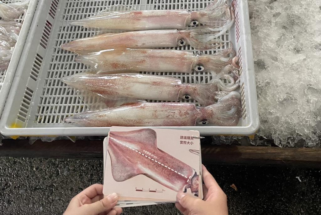 ▲ 每張魚卡貼心繪製建議購買的實際大小,方便旅人逛魚市場時直接比對。