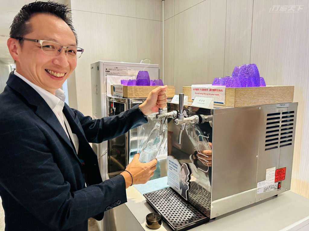 ▲ 澎澄飯店使用玻璃水瓶響應愛澎湖的減塑永續行動。