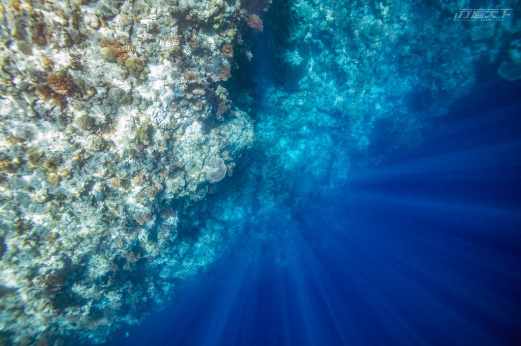 大斷層(Big Drop Off)被譽為世界七大潛點之一,不僅是潛水員的朝聖地,也是一處讓浮潛者驚呼連連的壯麗奇景。第一次在這裡浮潛,我便被眼前的景象深深震撼:僅僅3公尺深的淺水區,驟然銜接至超過600公尺的深海斷層,陽光穿透海水,映出層層漸變的深藍與碧綠,像是一幅動態的水下油畫。沿著斷層邊緣,各式軟硬珊瑚錯落有致,宛如海中森林。巨型海扇在水流中緩緩擺動,周圍熱鬧非凡:成群的小丑魚、雀鯛、鸚哥魚點綴其間,還有數以千計的金字塔蝶魚如星雨般散開,色彩斑斕、令人目不暇給,恍若在上帝的水族箱中悠游!