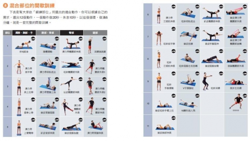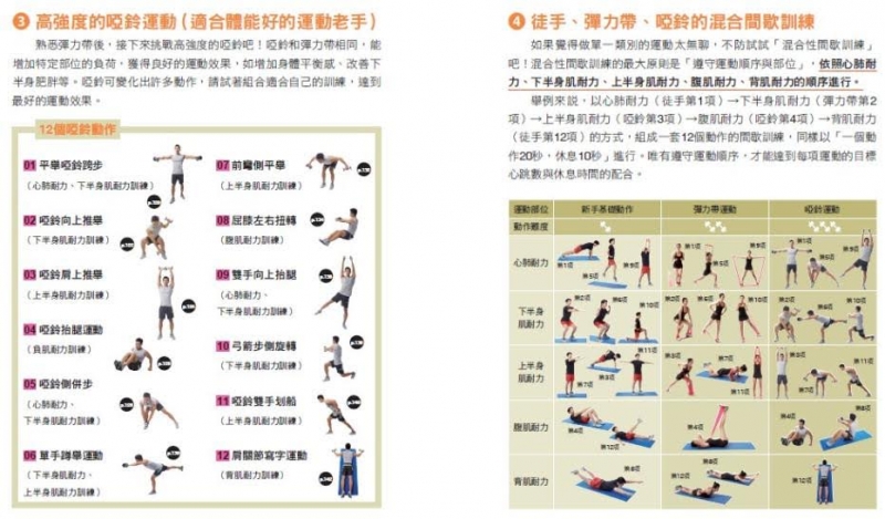◆徒手、彈力帶、啞鈴、椅子等,完整收錄99個「間歇訓練」