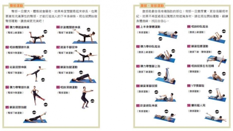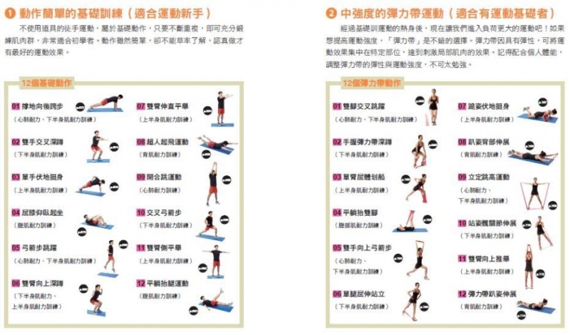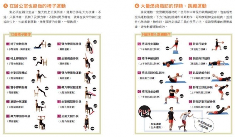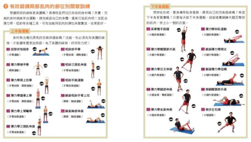 Q2書中收錄徒手、啞鈴、彈力帶、椅子等各種動作,